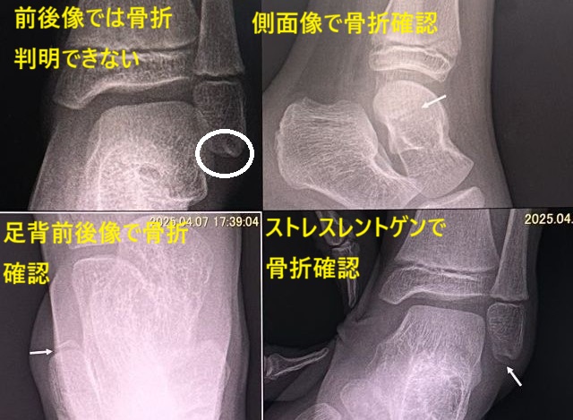 | 足首に内反力や外反力が強制されて軟部組織や靭帯が損傷される疾患です。足首の靭帯は脛腓靭帯、外側側副靭帯(前距腓靭帯・後距腓靭帯・踵腓靭帯)、内側側副靭帯(三角靭帯)などがあります。これらの靭帯によって足首の安定性が保たれています。足関節捻挫は3つのタイプに分かれます。 ■単なる捻挫のタイプ 靭帯損傷や剥離骨折のないタイプです。 症状は足首の痛みや腫れ、皮下出血、足部の不安定感、歩行障害です。 ■靭帯損傷のあるタイプ 脛腓靭帯損傷、外側側副靭帯損傷、内側側副靭帯損傷などがあるタイプです。 大半は内反が強制されて起こる外側側副靭帯損傷で、特に強度の弱い距腓靭帯損傷をよく見かけます。 診断はレントゲン検査と超音波検査です。レントゲンではケガをした時の足首の状態を再現したストレスレントゲン撮影が診断に有益です(断裂例)。また、超音波検査は動的に損傷部を観察できるため有益な情報を与えてくれます。 ■剥離骨折のあるタイプ 外果剥離骨折と内果剥離骨折などあるタイプです。大半が内反(内返し)が強制されて起こる外果剥離骨折です。 診断の際に多方向撮影やストレスレントゲン撮影で確認されることが多々あります。時に外反(外返し)が強制されて起こる内果剥離骨折も経験します。 また陳旧性外果剥離骨折(過去に骨折したタイプ)もありますので注意深く観察が必要です。まれに距骨骨軟骨障害を認めることもあります。疑わしければMRIで精査して下さい。 治療 1)保存的治療 受傷直後はライスの処置を行います。疼痛緩和に外皮用薬やアセトアミノフェン、非ステロイド性抗炎症剤などを短期間処方します。軽症例ではサポーター固定、中症から重症例はギプス包帯(足関節外果剥離骨折など)やギプスシーネを行います。なお、骨や筋肉の萎縮(衰え)を防ぐためにギプスのまま歩行を許可します。固定期間は損傷の程度に応じて2〜4週間程度とします。固定後は早期より足首のストレッチングや膝の筋力強化、足首の筋力強化(特に外返しの訓練)などの運動療法をを指示します。 2)手術的治療 重症例や早期スポーツ復帰を希望される症例、複合靭帯損傷例が適応となります。術式は縫合術や靭帯再建術を検討します。足関節捻挫は的確に診断し治療しないと、将来、変形性足関節症を招きロコモへと進展するので要注意です。 ×よく患者さんから「テーピングはいかがですか?」とお尋ねがあります。テーピングは皮膚にします。骨や靭帯にするわけではありません。15分程度のスポーツ活動をすると、粘着力が落ち、固定力がなくなります。靭帯損傷や剥離骨折の症例にはお勧めできません。なお小児の足関節捻挫はこどもの整形外科を参照されて下さい。