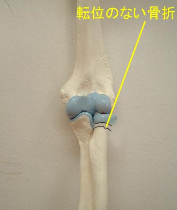 | 橈骨頚部骨折は肘が伸びた状態で手をついて転倒した際に、関節に外反力が強制され橈骨頭と上腕骨小頭が衝突して骨折が発生します。6歳から13歳によく認められます。 症状 肘の痛みや腫れで、痛みのために肘を動かそうとしません。 診断 レントゲン検査が不可欠です。しかし転位(ずれ)のない症例は見逃され易いので注意深い観察が必要です。 治療 保存的治療(手術しない方法)が原則です。 1)保存的治療 転位のない症例や転位が軽度な症例は三角巾や数週間のギプス包帯で治療します。転位が著明な症例や将来、肘の変形や運動障害が予測される症例では全身麻酔を用いて徒手整復術を行い固定ます。 2)手術的治療 保存的治療(手術しない方法)で整復されない症例や粉砕例(バラバラになった骨折)は骨接合術(骨をつなぐ手術)が必要となります。時に放置され、成人になって偽関節や変形性肘関節症を来たし受診されることもあります。正確な診断と治療が必要です。なお、成人の症例は橈骨頭骨折・橈骨頚部骨折を参照されて下さい。