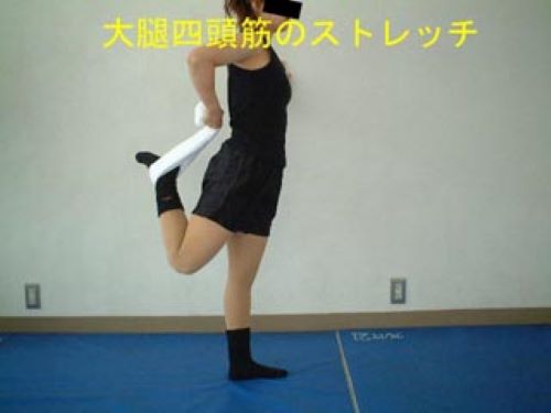 | 急激なダッシュやストップ、ターンを伴うスポーツでは大腿四頭筋やハムストリングスや腓腹筋に過度の負担が生じます。 ●大腿四頭筋の肉離れは、股関節の屈曲と伸展に大きく関与する大腿直筋の肉離れを高頻度に認めます。大腿直筋を中心としたストレッチが大切です。 ●ハムストリングスの肉離れは、股関節の伸展や膝関節の屈曲に大きく関与するため、ダッシュやストップ、ターンの際によく肉離れを生じます。治療や予防のためにはハムストリングスのストレッチが大切です。 ●腓腹筋の肉離れは、ランニングやジャンピングやキックの原動力である腓腹筋に好発します。大半は内側頭に発生します。治療や予防のためには腓腹筋の内側頭のストレッチが大切です。 各ストレッチは痛みのない程度に、ゆっくりと筋肉を伸ばし、心地よい緊張感を維持する程度にストレッチします。各ストレッチは20秒間行い、5回をワンセットとし、一日に3セット行います。