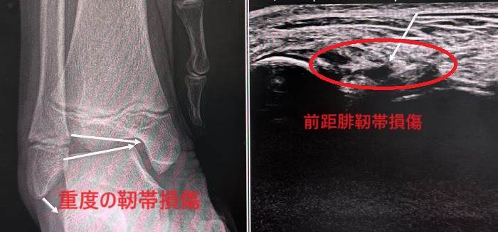 | 足首に内反力や外反力が強制されて軟部組織や靭帯が損傷される疾患です。足首の靭帯は脛腓靭帯、外側側副靭帯(前距腓靭帯・後距腓靭帯・踵腓靭帯)、内側側副靭帯(三角靭帯)などがあります。これらの靭帯によって足首の安定性が保たれています。足関節捻挫は3つのタイプに分かれます。 ■単なる捻挫のタイプ 靭帯損傷や剥離骨折のないタイプです。 症状は足首の痛みや腫れ、皮下出血、足部の不安定感、歩行障害です。 ■靭帯損傷のあるタイプ 脛腓靭帯損傷、外側側副靭帯損傷、内側側副靭帯損傷などがあるタイプです。 大半は内反が強制されて起こる外側側副靭帯損傷で、特に強度の弱い距腓靭帯損傷をよく見かけます。 診断はレントゲン検査と超音波検査です。レントゲンではケガをした時の足首の状態を再現したストレスレントゲン撮影が診断に有益です(断裂例)。また、超音波検査は動的に損傷部を観察できるため有益な情報を与えてくれます。 ■剥離骨折のあるタイプ 外果剥離骨折と内果剥離骨折などあるタイプです。大半が内反(内返し)が強制されて起こる外果剥離骨折です。 診断の際にストレスレントゲン撮影で判明することが多々あります。時に外反(外返し)が強制されて起こる内果剥離骨折も経験します。 また陳旧性外果剥離骨折(過去に骨折したタイプ)もありますので注意深く観察が必要です。まれに距骨骨軟骨障害を認めることもあります。疑わしければMRIで精査して下さい。 治療 1)保存的治療 受傷直後はライスの処置を行います。疼痛緩和に外皮用薬やアセトアミノフェン、非ステロイド性抗炎症剤などを短期間処方します。軽症例ではサポーター固定、中症から重症例はギプス包帯(足関節外果剥離骨折など)やギプスシーネを行います。なお、骨や筋肉の萎縮(衰え)を防ぐためにギプスのまま歩行を許可します。固定期間は損傷の程度に応じて2〜4週間程度とします。固定後は早期より足首のストレッチングや膝の筋力強化、足首の筋力強化(特に外返しの訓練)などの運動療法をを指示します。 2)手術的治療 重症例や早期スポーツ復帰を希望される症例、複合靭帯損傷例が適応となります。術式は縫合術や靭帯再建術を検討します。足関節捻挫は的確に診断し治療しないと、将来、変形性足関節症を招きロコモへと進展するので要注意です。 ×よく患者さんから「テーピングはいかがですか?」とお尋ねがあります。テーピングは皮膚にします。骨や靭帯にするわけではありません。15分程度のスポーツ活動をすると、粘着力が落ち、固定力がなくなります。靭帯損傷や剥離骨折の症例にはお勧めできません。なお小児の足関節捻挫はこどもの整形外科を参照されて下さい。